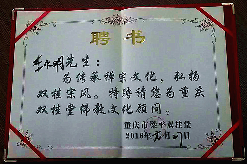 2016年1月27日,重慶市佛教協(xié)會(huì)會(huì)長(zhǎng)、梁平雙桂堂方丈釋身振大和尚,蒞臨重慶旅游與文化研究院向李永明院長(zhǎng)頒發(fā)聘書(shū),聘請(qǐng)李永明院長(zhǎng)擔(dān)任梁平雙桂堂佛教文化顧問(wèn)。李永明院長(zhǎng)是梁平縣人民政府文化旅游顧問(wèn),曾經(jīng)為梁平縣黨政干部做過(guò)《禪宗文化與梁平旅游》專題講座,并為梁平縣擬定了禪宗文化通俗讀本《雙桂禪風(fēng)》。釋身振大和尚和李永明院長(zhǎng)進(jìn)行了親切友好交談,并就如何挖掘雙桂堂佛教文化、提升雙桂堂品牌知名度、促進(jìn)雙桂堂文化旅游發(fā)展交換了意見(jiàn)。