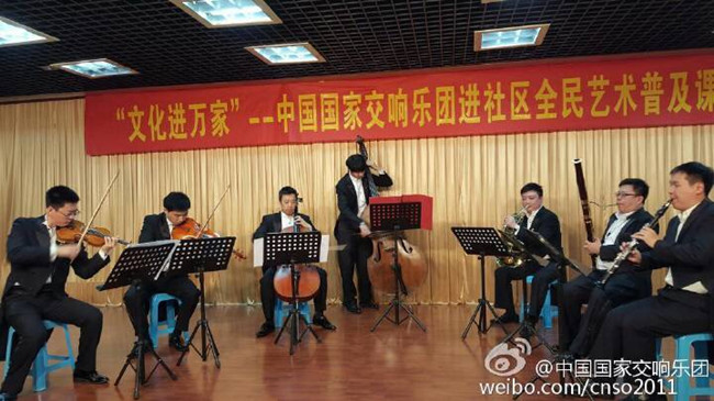 中國國家交響樂團與南岸區(qū)、與迎龍鎮(zhèn)北斗村的文化共建活動進入第六年,六年來,北斗村農(nóng)民銅管樂隊從建立到發(fā)展,從登上國交新年音樂會的舞臺,到登上北京音樂廳的舞臺,再到2015年9月登上國家大劇院的舞臺,每向前邁進一步,都飽含著藝術家和農(nóng)民兄弟一起付出的努力與汗水,真實的體現(xiàn)了人民群眾對文藝的需要和喜愛,也真實的體現(xiàn)了藝術家們對人民群眾的關心和熱愛。因音樂而結緣,因音樂把大家緊密聯(lián)系在一起,國交播撒了文化藝術的種子,北斗村的鄉(xiāng)親們蘊育了這棵幼芽,讓其在這片希望的田野上茁壯成長,開花結果。